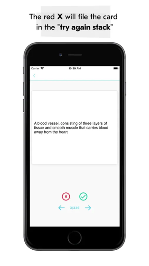 As a study tool, you can quiz yourself on any card using the flashcard feature. If you get the answer right, you can place the card in the “Answered Correctly” pile. If you get the answer wrong, you can place the card in the “Answered Incorrectly” pile. This allows you to isolate the incorrect cards and quiz yourself on your weak points later.