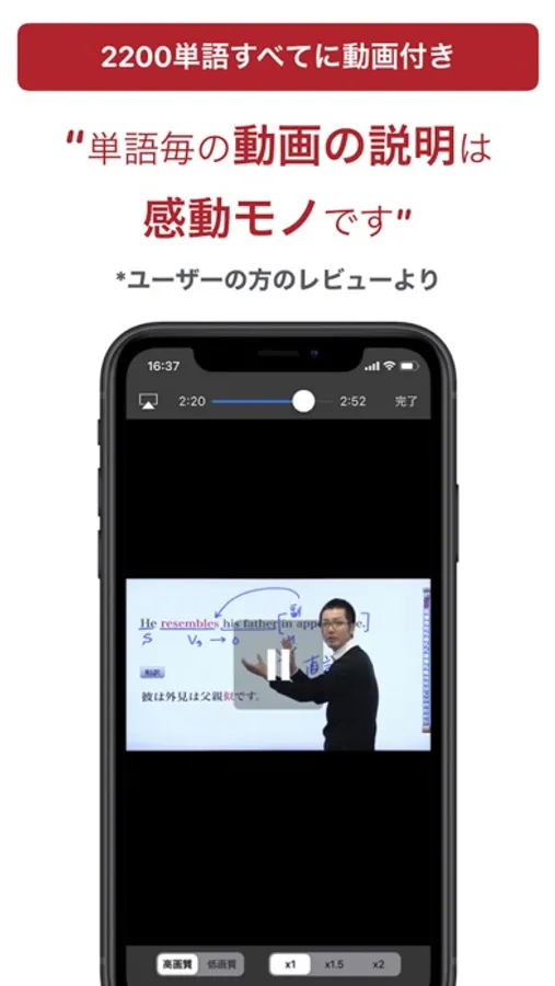 This app has been designed to help out millions of Japanese people who have much difficulty memorizing English words. A Japanese English teacher added explanations to each example sentence of 2200 English words. 80 hours of movies will surely help them get over this situation.