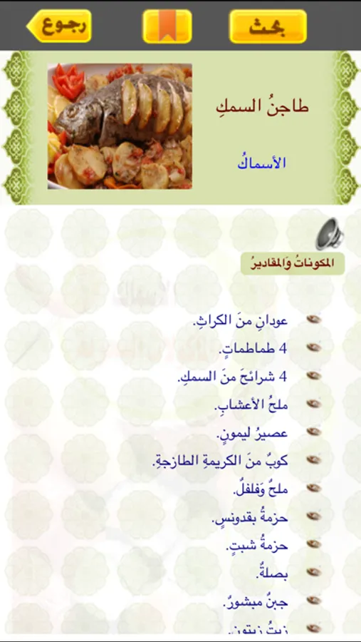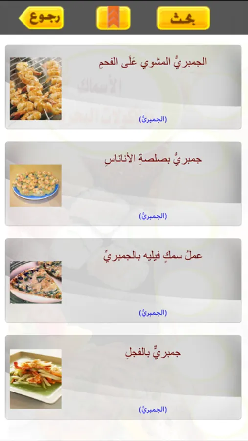 برنامج "الأسماك والماكولات البحرية " يتضمن وصفات :