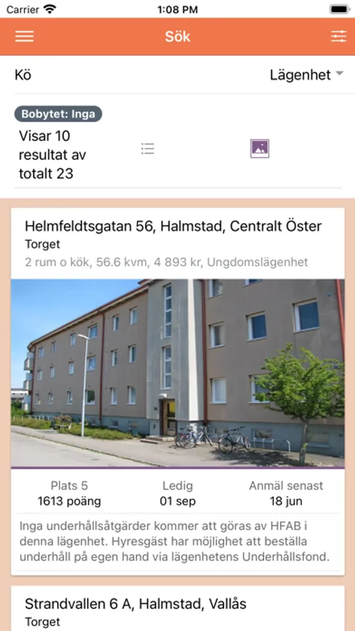 Med HFAB:s app kan du enkelt söka bland våra lediga lägenheter och fordonsplatser.