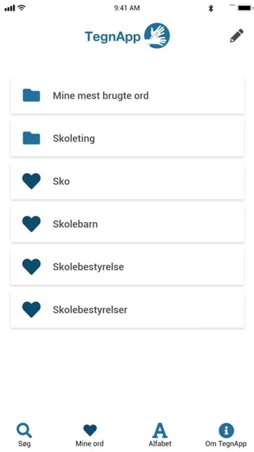 TegnApp er en ordbog, som giver dig mulighed for at søge og finde de tegn, du står og mangler. Du får en kort video, hvor en professionel tegnsprogstolk viser dig, hvordan tegnet udføres.