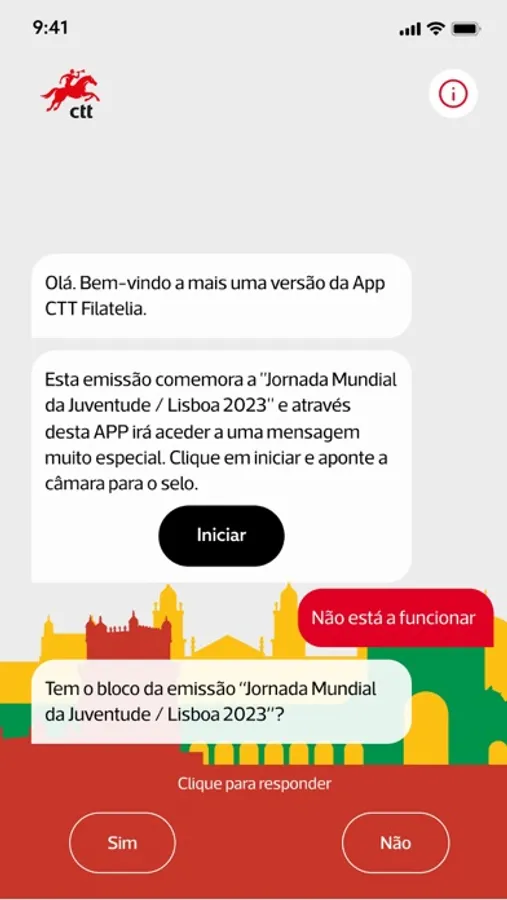1) Descarregue a App CTT Filatelia, disponível nas App Store e Play Store, para o seu