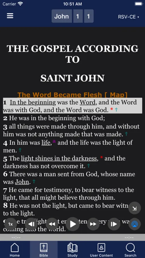 • A built-in playlist to listen to the whole New Testament in just 40 days or in chronological order.