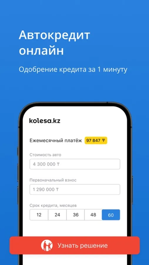 • Покупайте автомобиль в кредит из приложения, получите одобрение за 1 минуту