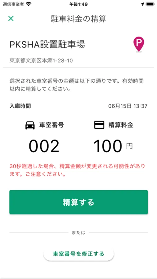 バーコードリーダーのついている精算機では、アプリに表示されたバーコードを読み取らせる事でご登録のクレジットカードでご精算できます。