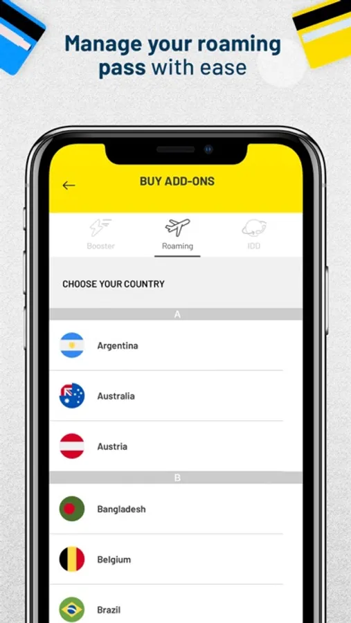 Internet Top Up and International Roaming Passes: