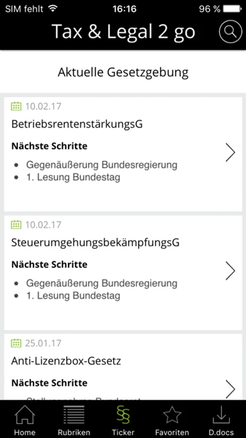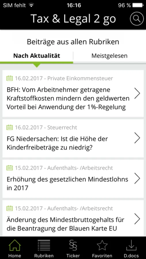 Stay abreast of tax issues even when on the move! Look for relevant articles in the different sections and save your favorites with the Tax to Go function. This allows you to call up the desired content later and read it at your leisure in offline mode.
