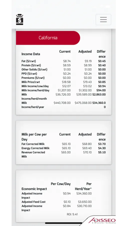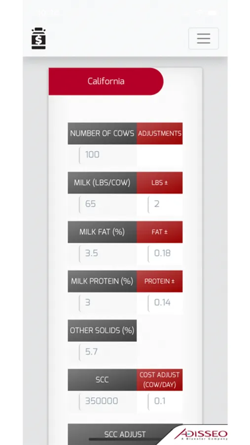 The calculator provided by Adisseo is for use by those in the dairy industry. Adisseo is the manufacturer of Smartamine® M and MetaSmart® methionine for ruminants. The calculations are estimates based on the data entered. Neither Adisseo, its agents, salesmen nor its employees make any warranty about the accuracy or results of numbers used in the calculations.