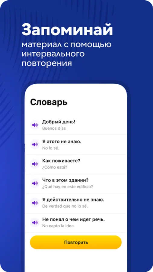 • Словарь изученных слов и фраз