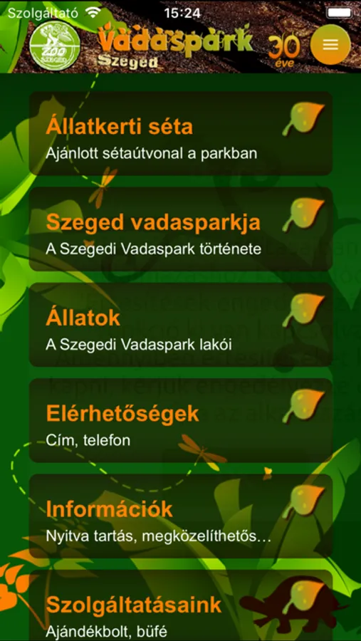 • hangfájlokkal kiegészített virtuális séta a Szegedi Vadasparkban
