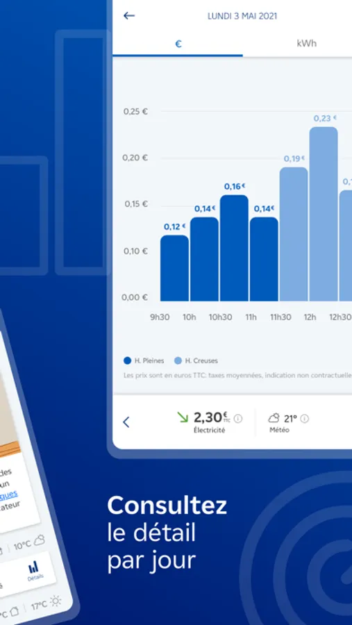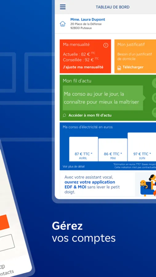 • voir en un coup d'œil l'état de votre compte EDF et de votre consommation sur le tableau de bord,