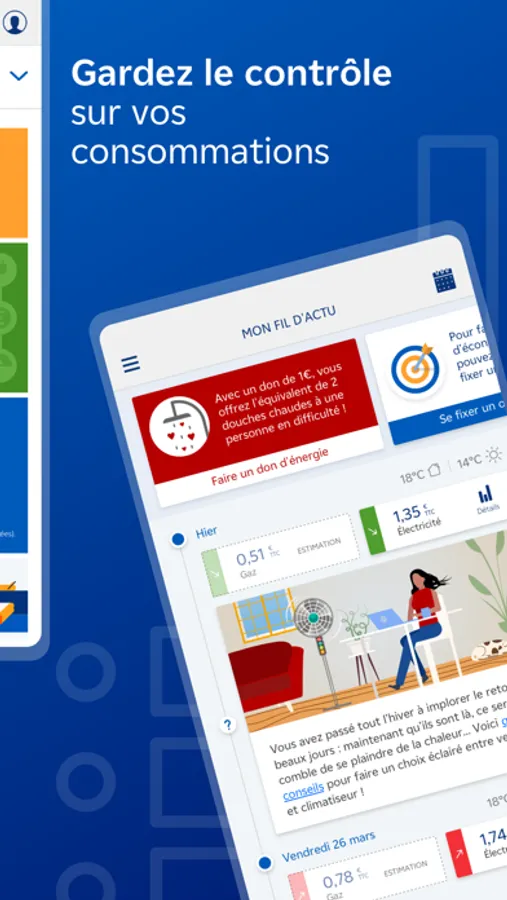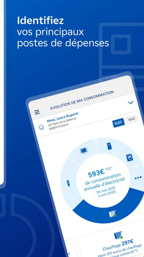 • connaître vos dépenses d’énergie jour après jour avec « Mon fil d’actu » (pour les clients équipés d’un compteur Linky™ ou Gazpar™ communicant),