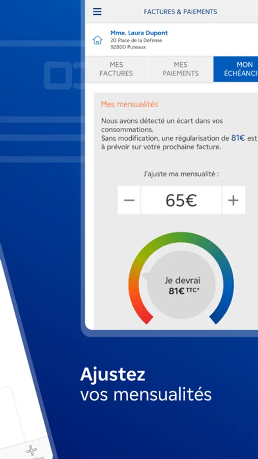• ajuster votre mensualité pour l’adapter à votre conso réelle (uniquement pour les clients équipés d’un compteur Linky™ communicant),