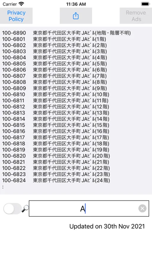 A simple and popular free zip code search app that allows you to easily search for a zip code from an address and an address from a zip code offline. List the postal code of the address corresponding to the search keyword. Display the corresponding address from the 7-digit zip code. Since it is local data, it can be used offline. For tracking New Year's cards, summer greeting cards, luggage and mail.