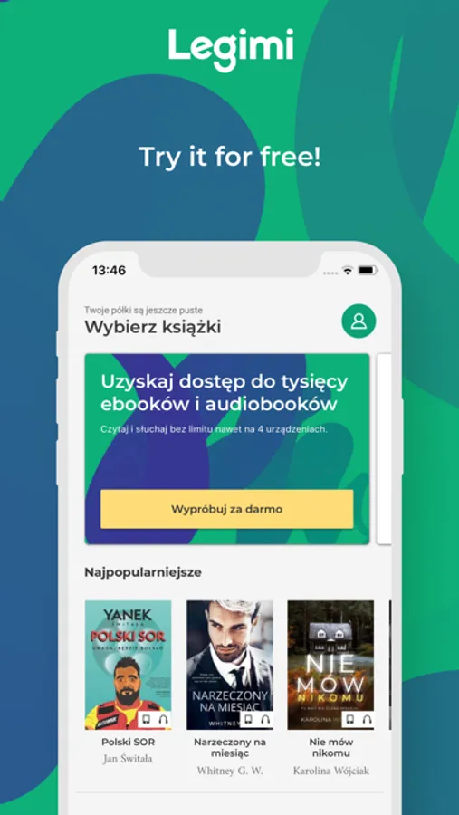 Read and listen to the products during a free trial period. If you like it, you can use up to four devices (smartphone, tablet, computer, and e-reader) to read bestsellers, hot new arrivals, and anything else you choose. When you purchase a subscription for unlimited ebook and audiobook access, you will have your books available in both text and audio versions. With synchrobooks®, you can switch formats at any time, so you will never get distracted from your reading. Legimi is a unique, mobile library available at your fingertips.