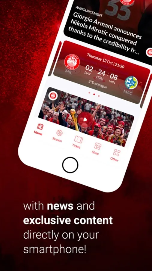 Inside the App you will find multiple features designed to make you enjoy the Olimpia Milano season to the fullest.