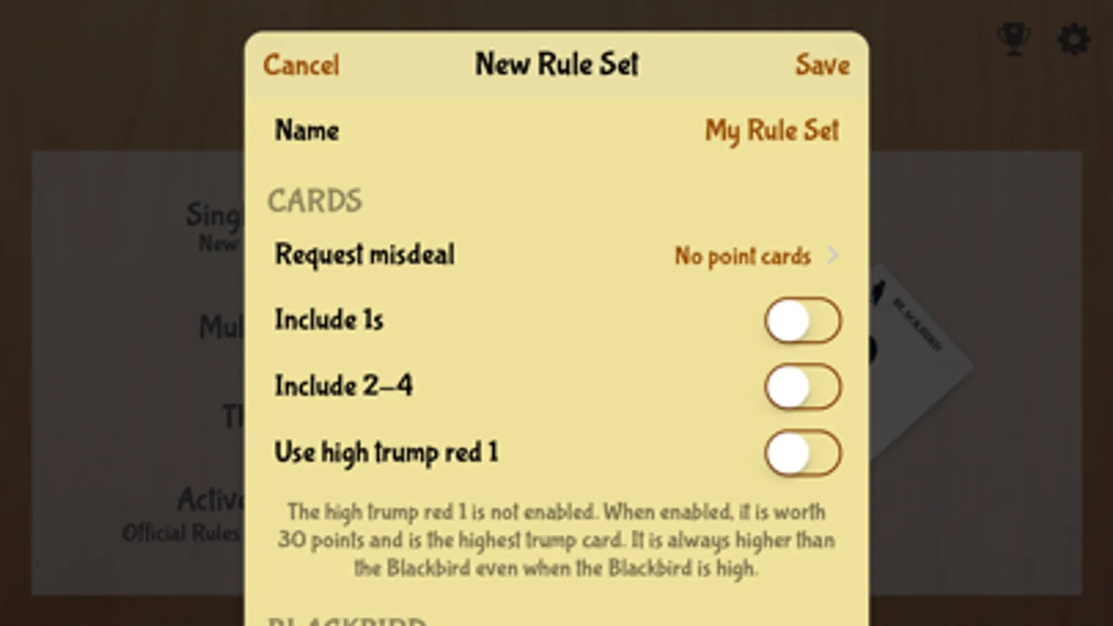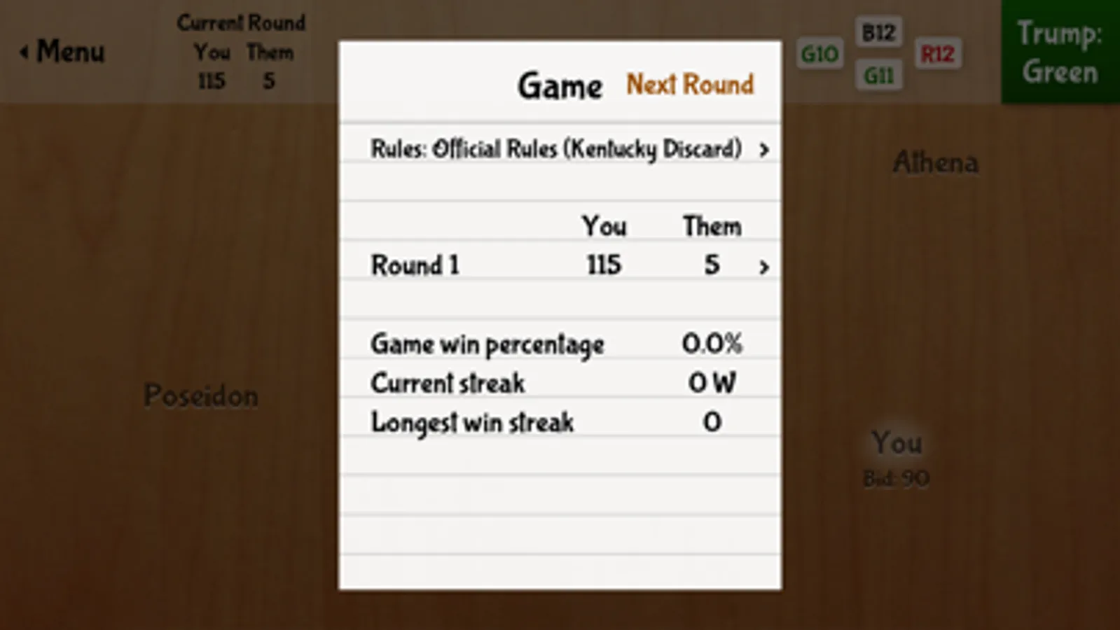 Play with two widely different rule sets (Kentucky Discard or Western Wyoming) or create your own set of rules to play with any of these options that can be on or off: