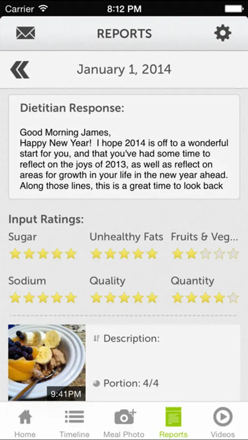 Get the free app as a part of your My Dietitian membership. The My Dietitian membership enables users to upload their meals via picture journaling and receive customized daily feedback from your personal Registered Dietitian. Users also can record their physical activity and daily parameters such as sleep and stress.