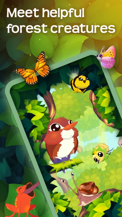 Your goal is to complete butterfly collections in the Flutterpedia, earning new butterflies, decorations, and Flutterbucks along the way. Over time, you expand your forest sanctuary and decorate it with an amazing assortment of plants, flowers, and fungi. You’ll meet some other creatures in your forest too!