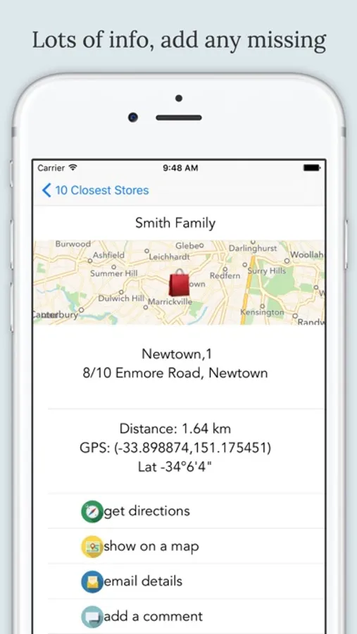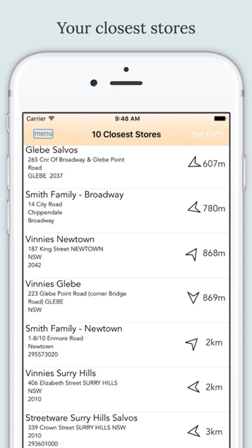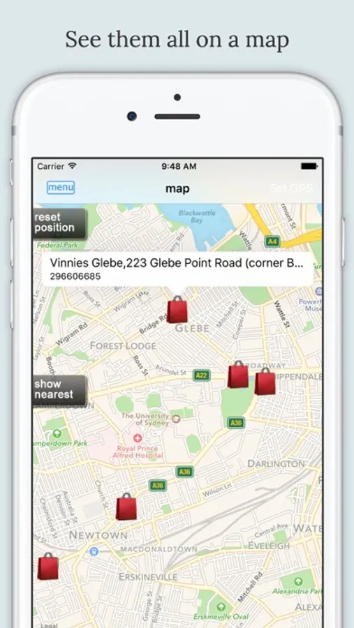 Our app uses the GPS on your device to tell you where the nearest shops are, and help you find them.