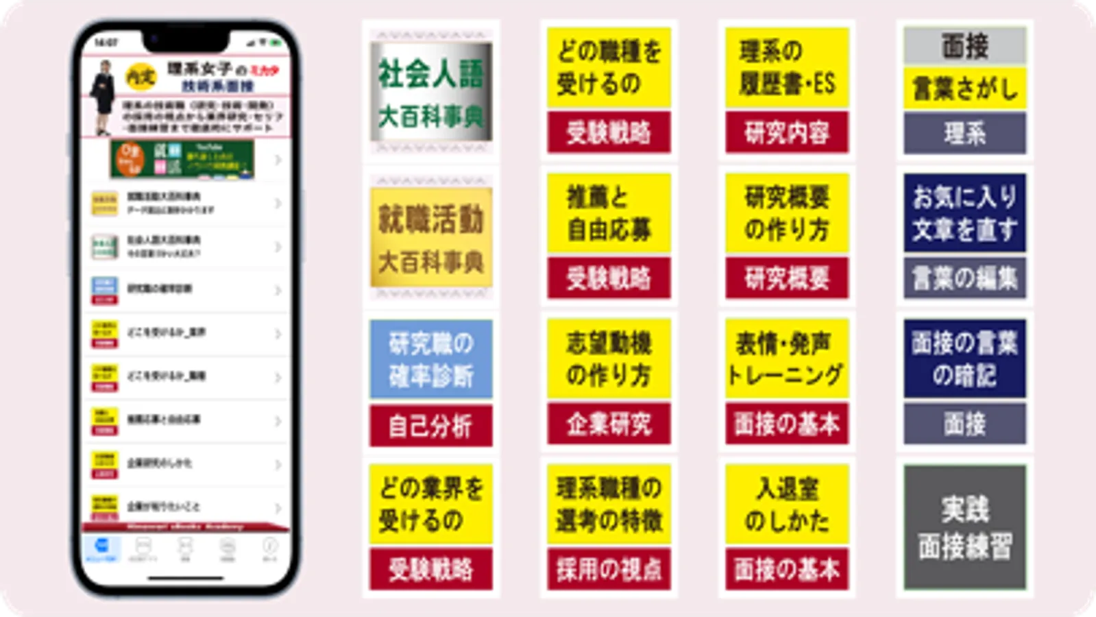 研究・技術・生産管理・品質保証などのエンジニア系面接対策アプリ 理系女子版。