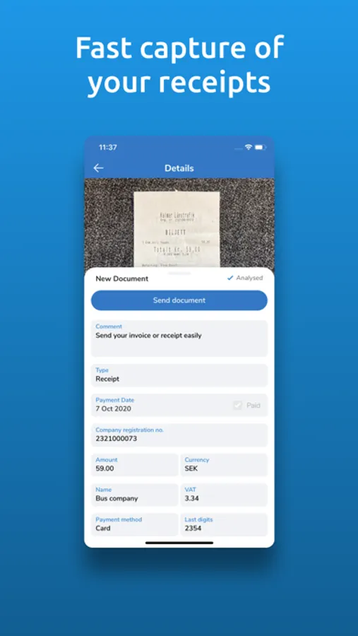 You reduce the risk of receipts being forgotten and get the bookkeeping documents straight into your accounting program. The booking is made easy, as you have all the information you need to make the entries available on your screen.