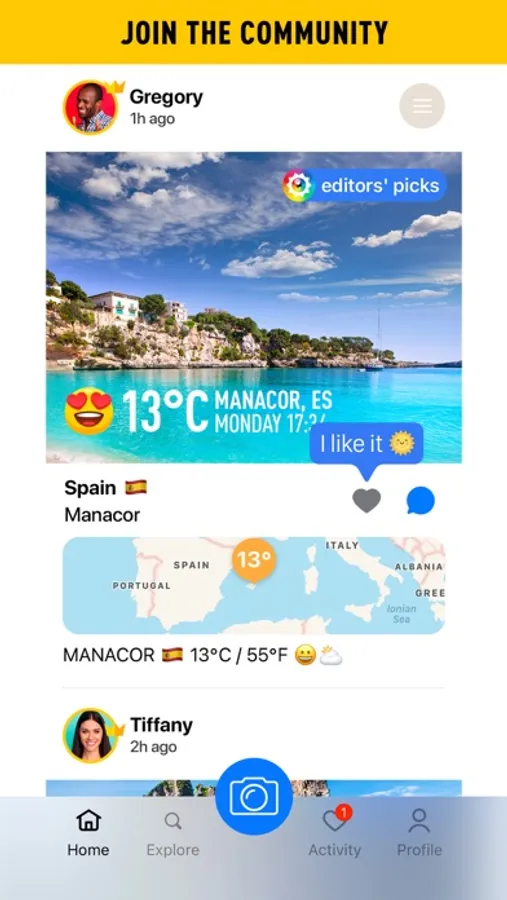 Make your friends jealous, place a perfect weather report on top of your edited photo!