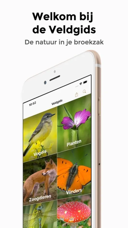 Altijd je digitale veldgids bij de hand. Een interactieve iPhone app met de meest voorkomende vogels, veldbloemen, paddenstoelen en zoogdieren. De app heeft nu meer dan 600 soorten.