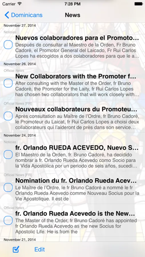 The Dominican App is the official App of the Order of Preachers. This App gives news updates, access to documents, audio recordings and videos of the Dominican Order.