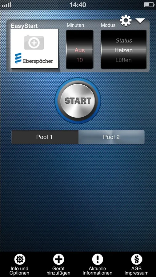 By downloading the app you accept our Terms of Use which you can view at [http://www.eberspaecher.com/index.php?id=7492]. The app is an additional tool to simplify the operation of the EasyStart Call. Changes in the operating system IOS by the provider are not always apparent for us, therefore, no liability can be accepted for compatibility with your smartphone.