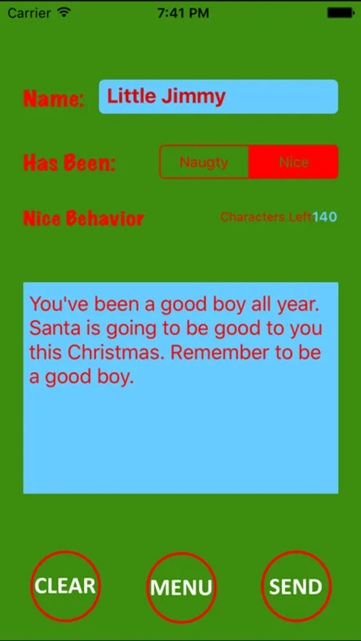 Has your child done something wonderful and you feel he should be rewarded for his/her positive behavior? iText Santa and let him know so Santa can send you back a customized "Nice list" message to your child: