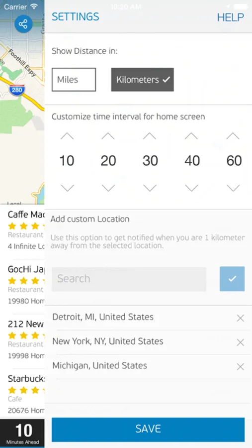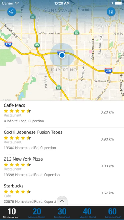 This app helps users to find restaurants that are just a minute away or even 20-60 minutes away from their current location.
