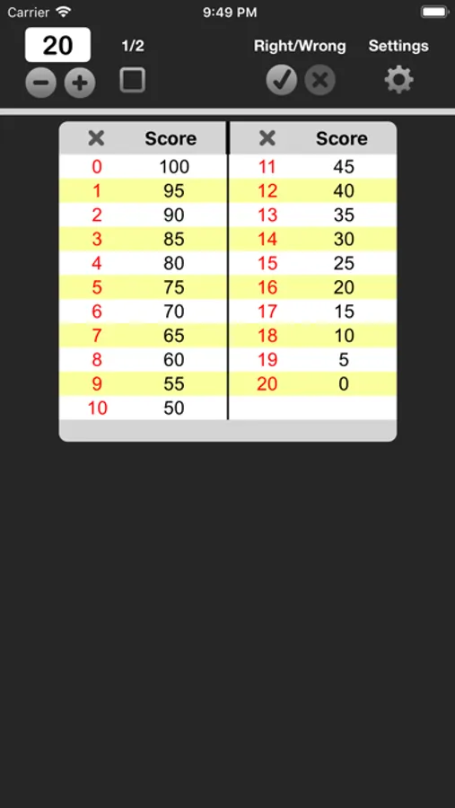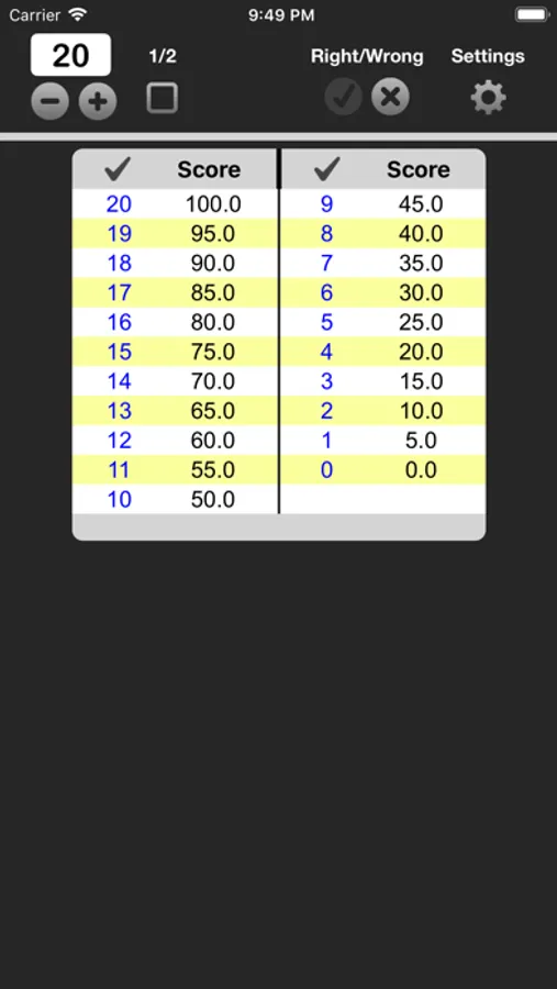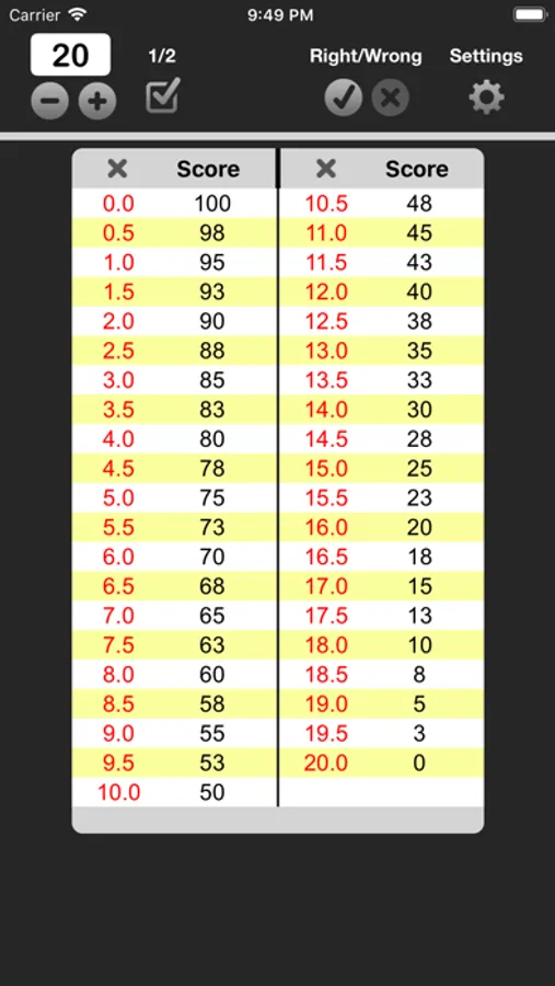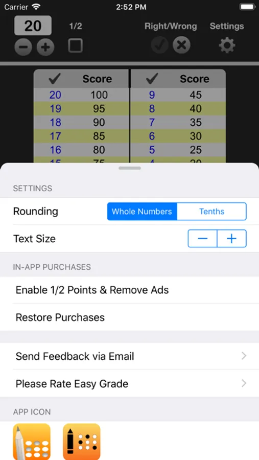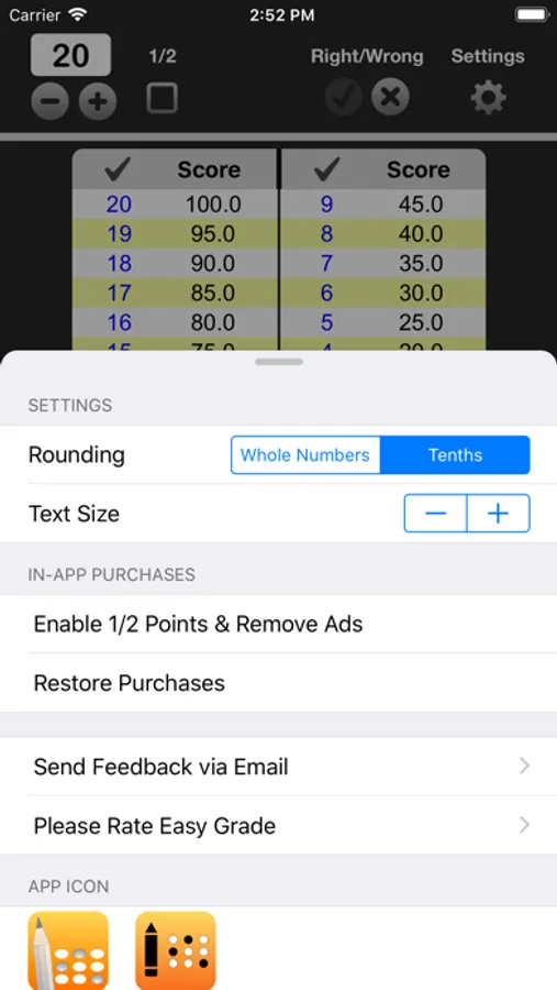 • Choose whether you want to increment by half-points in case you gave partial credit (feature available via In-App Purchase)