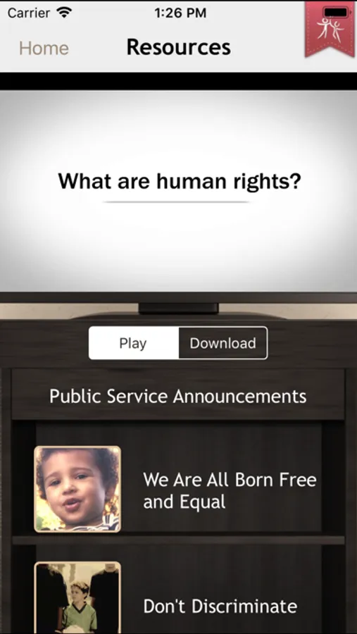 The application gives you access to the complete Educator’s Guide, the documentary film The Story of Human Rights, 30 award-winning public service announcements illustrating the 30 human rights, the UNITED music video and two booklets, What Are Human Rights? and The Story of Human Rights.