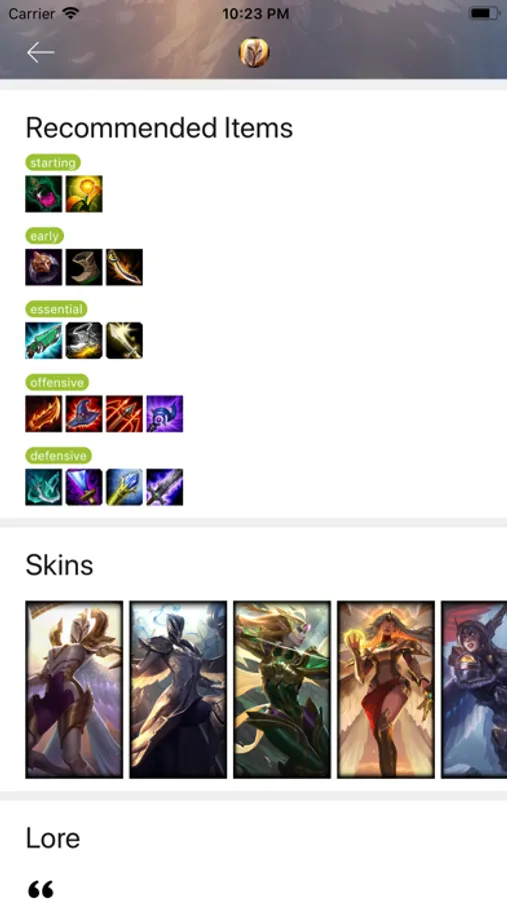 A beautifully designed League of Legends app that allows you to learn about LOL's champions, items, runes, skins, etc.