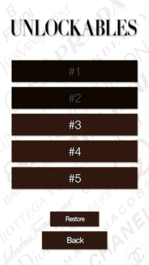 To give you incentive to score better, we have created the "Unlockables" - a list of the top 5 luxury brand values in handbags. A profile and brand logo is included, after unlocked have the perfectly scaled logo as your wallpaper.