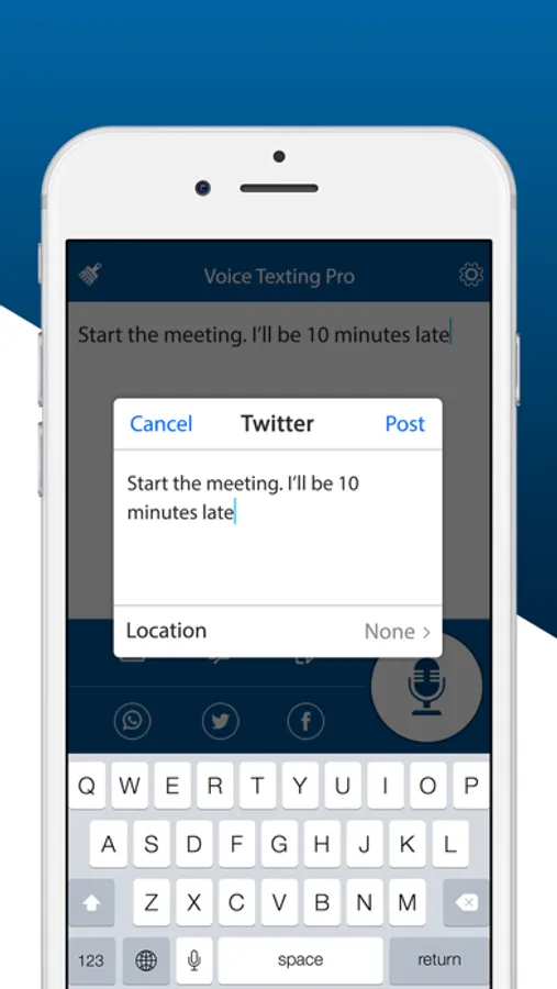 After the massive success of 'Voice Texting Pro', we have now launched 'Voice Texting Deluxe'. It's still simple: just speak into the microphone and convert your speech into text. Then directly send your message to e-mail, sms, Twitter or Facebook. You can also send it to your clipboard (copy) and paste the dictated text in any other application.