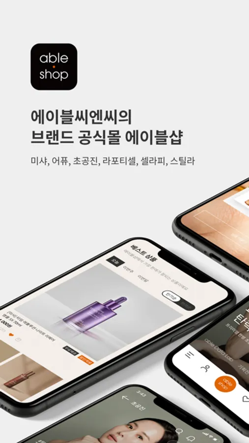 에이블씨엔씨 브랜드 미샤, 어퓨, 초공진, 스틸라, 셀라피, 라포티셀 공식몰 에이블샵 입니다.
