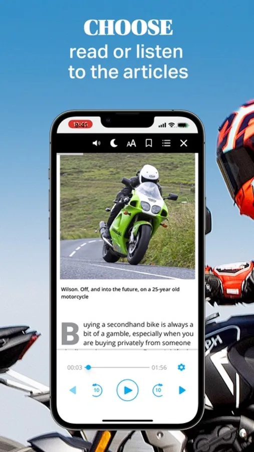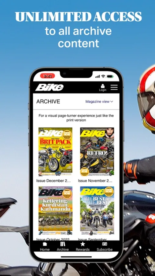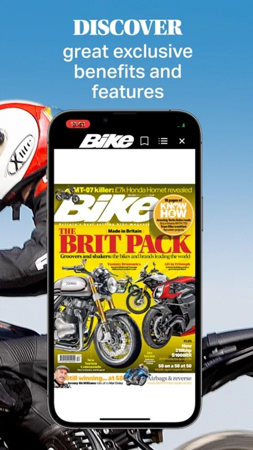 The official app of Britain's best-selling motorcycle magazine. With intelligent writing, stunning photography and exclusive content, Bike takes you on a motorcycling journey celebrating everything on two wheels. From in-depth comparisons and reviews of new and used bikes, to inspiration for your next biking adventure, behind-the-scenes race access and the most fascinating characters, Bike magazine is your definitive guide to all things motorcycling.