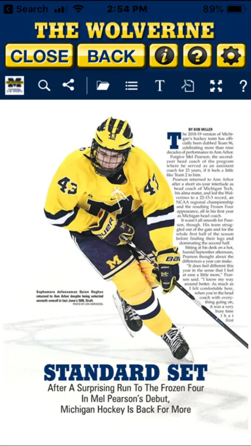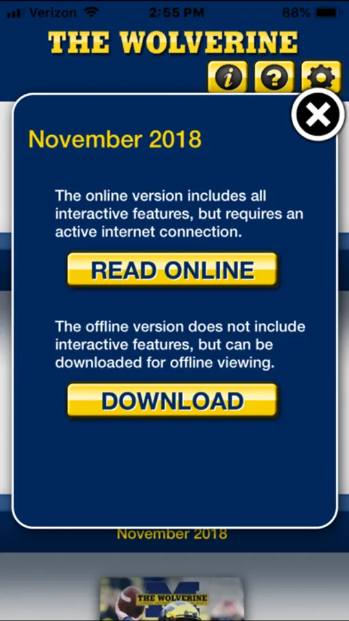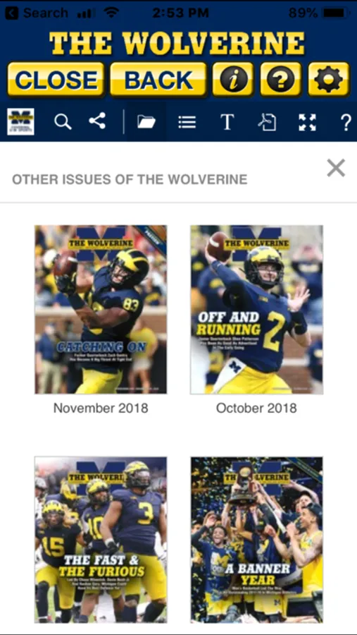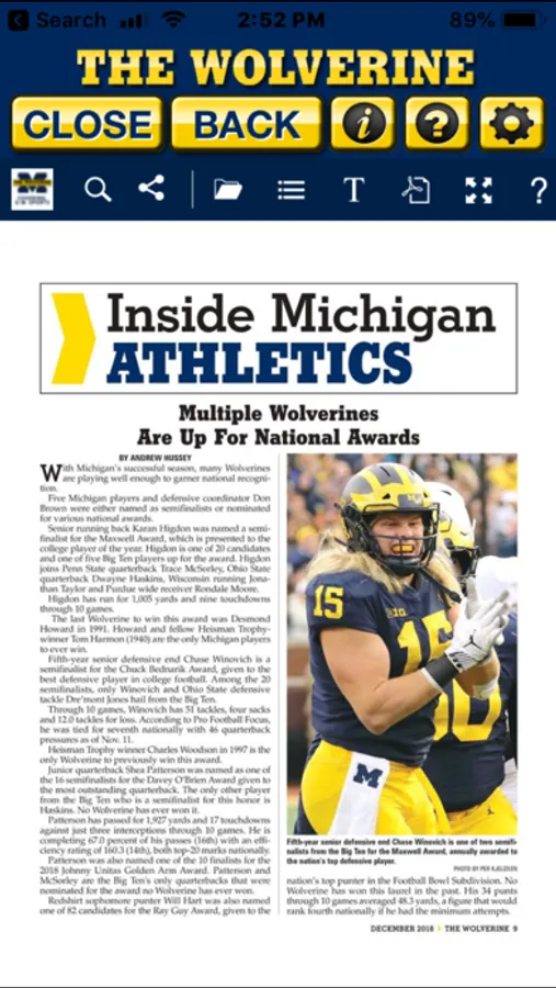 The digital magazine includes everything from the print issue. Plus, during football season you can access the weekly newsletter, The Wolverine Now, for game previews and reports as well as football team updates within the app.