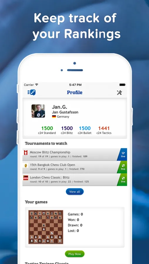 - Manage your chess24 profile right from your mobile device
