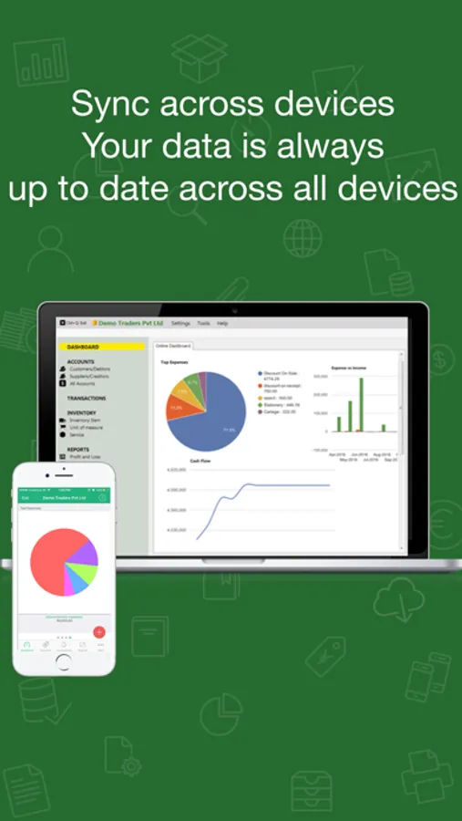 • Online Sync: Sync your company data across multiple devices via Dropbox. All data entered on one device gets reflected on other device at the same time!!