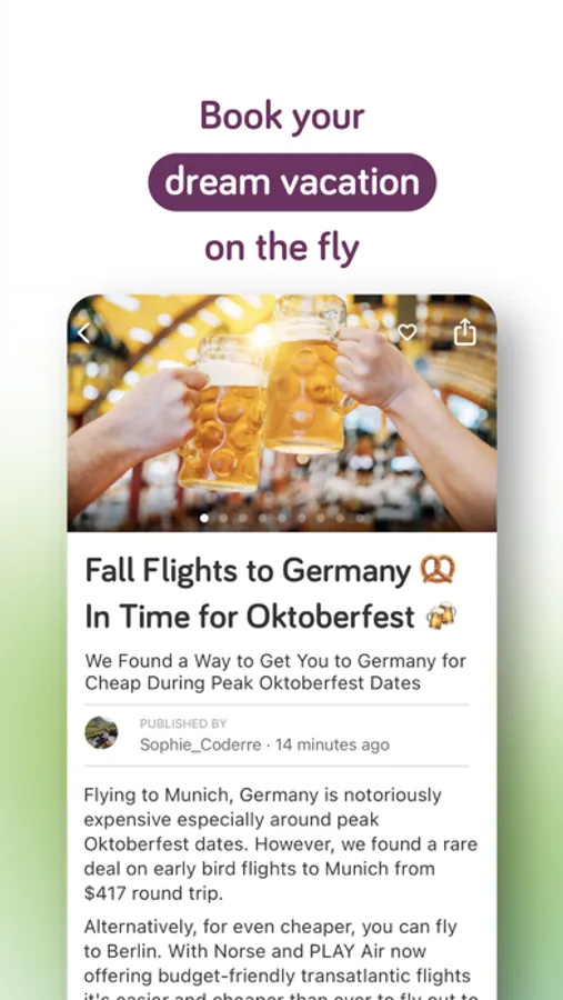 STEP 2 – We post these travel deals on our TravelPirates App, including customization options such as departure airports, destinations, and travel dates