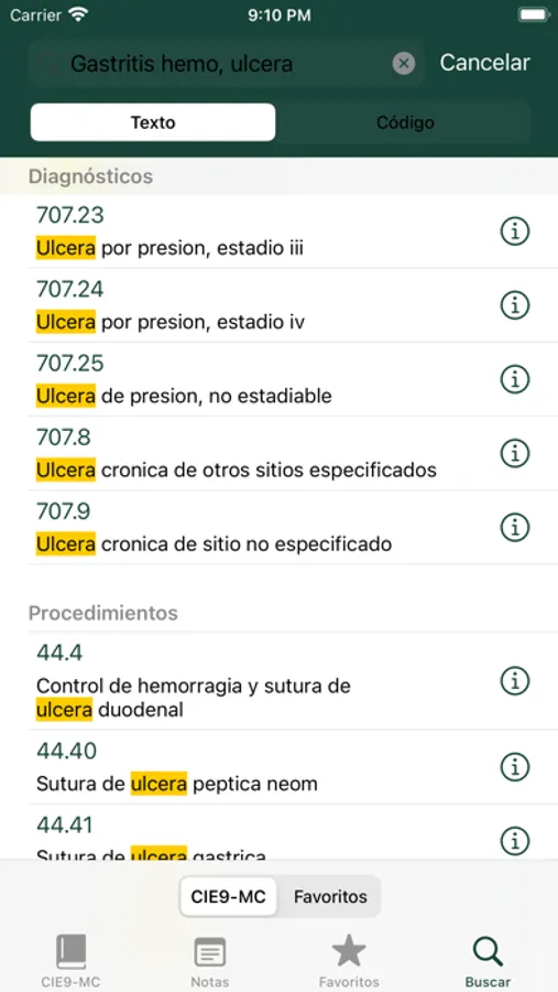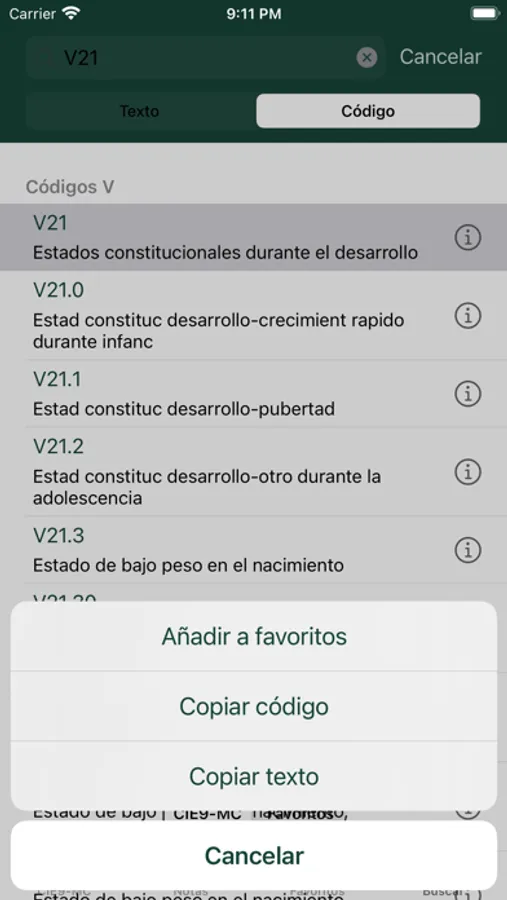 - Navegación por clasificaciones: enfermedades, procedimientos, códigos V, código E y Morfología de las Neoplasias.