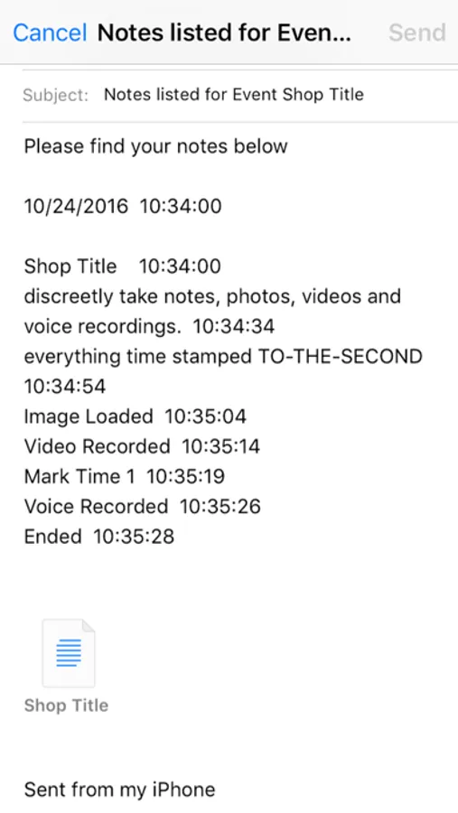 “Shop It!” is World’s first inconspicuous note-taking app. It looks and acts like a normal texting screen, but instead of the text entries being sent to another phone, they are recorded and time-stamped on a ‘notes’ page. You can also add photos, videos and voice memos.