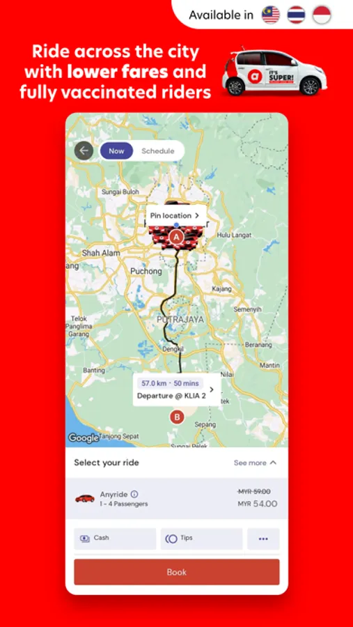With airasia ride, you can now get anywhere in the country with ease. This e-hailing app offers cheap taxi fares to your destination, even if you are looking for an intercity ride. You can also pre-book your airasia ride airport taxi 3 days before your flight. Have peace of mind on your airport ride with the airasia ride taxi app.