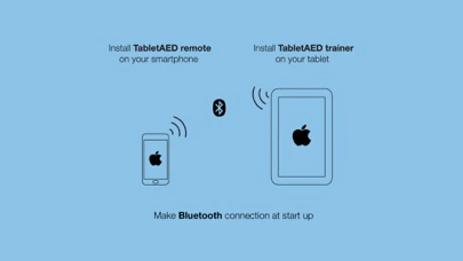 In combination with the e-learning you have the ultimate instructor package. Install the TabletAED trainer app on your iPad. This includes 1 free AED trainer. Do you prefer remote control, also install the free TabletAED remote app on your iPhone.