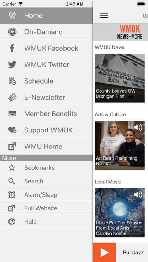 The WMUK Public Radio App allows you to listen to WMUK, pause and rewind the live audio, and view the program schedule for all the WMUK streams at once! You can explore On Demand content, search for programs, bookmark a program for later, and wake up to WMUK with the alarm clock!