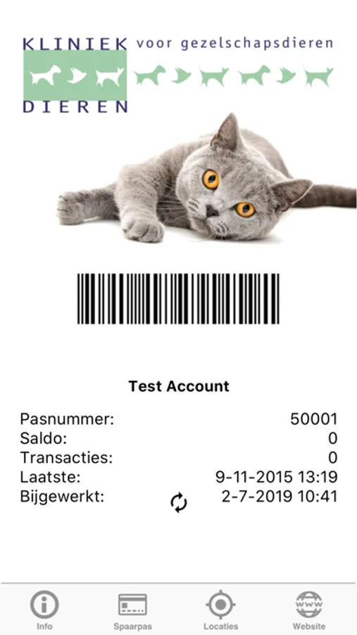 - de loyaltycard wordt weergegeven