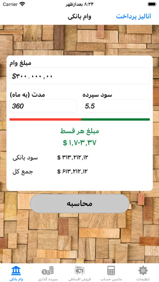 *محاسبه اقساط وام با شرایط مختلف